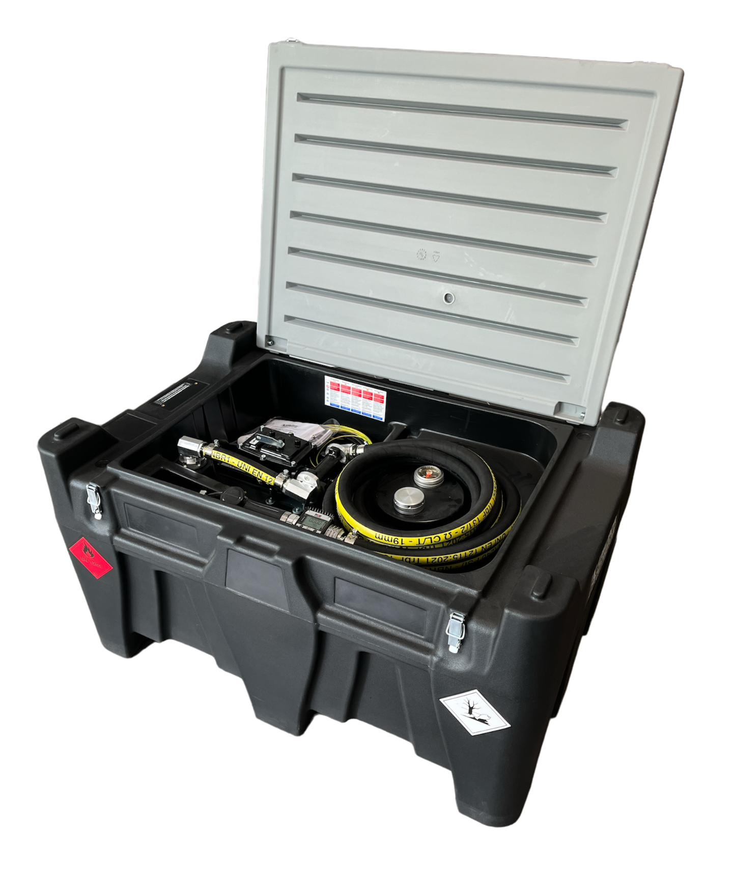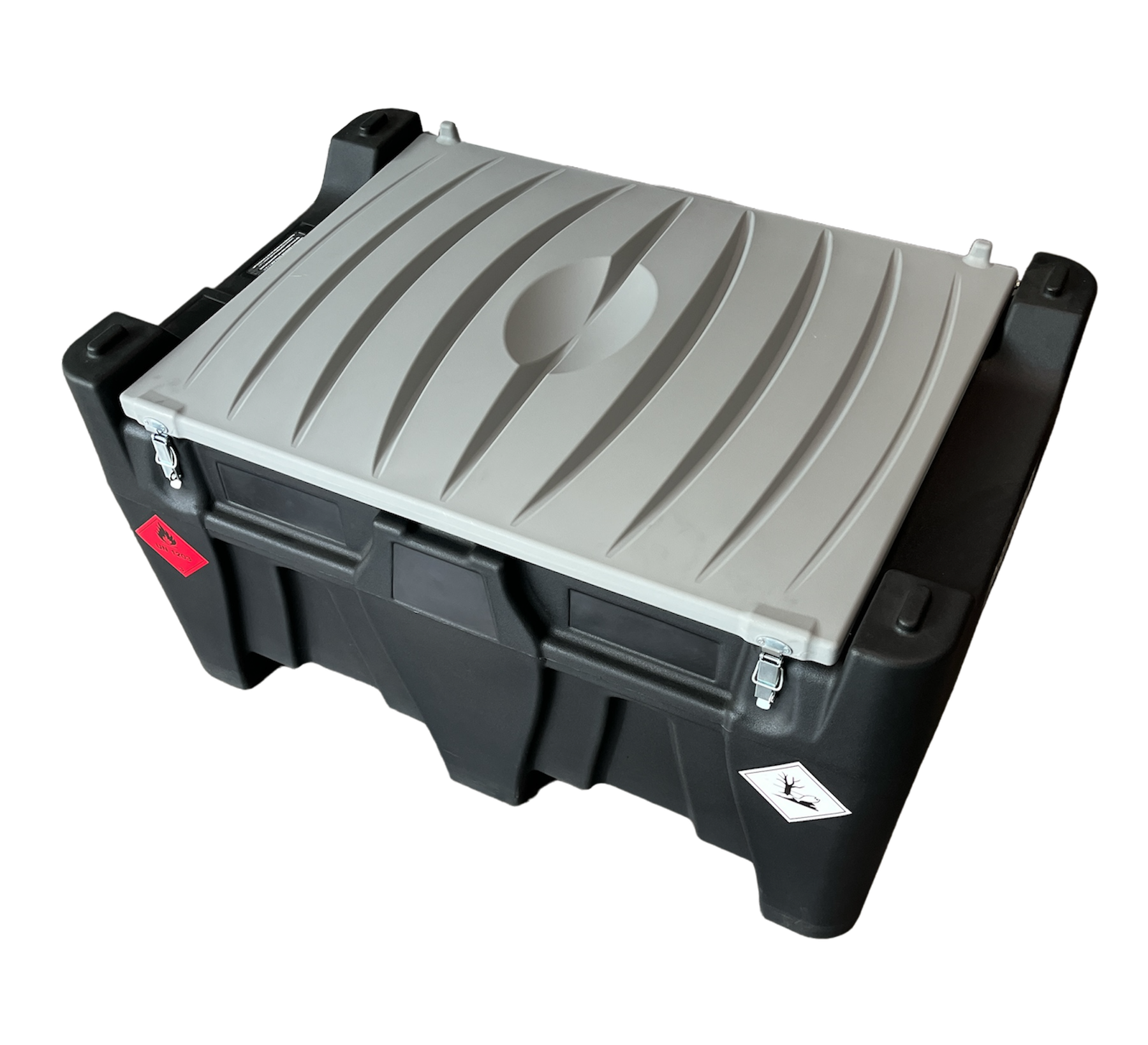 Kompaktowy i lekki, wykonany z polietylenu liniowego w technologii rotomoldingu, zbiornik Carrytank na benzynę wyposażony jest w następujące elementy: wzmocnioną, zamykaną pokrywę, wlew 2″, urządzenie wentylacyjne, jednostkę do transferu paliwa, zintegrowane kieszenie na widełki (dla pełnego zbiornika), uchwyty do podnoszenia i przenoszenia (dla pustego zbiornika) oraz zintegrowane wgłębienia do zabezpieczania paska zaciskowego podczas transportu. Wszystkie elementy wykonane są z aluminium lub materiałów kompatybilnych z paliwem benzynowym.