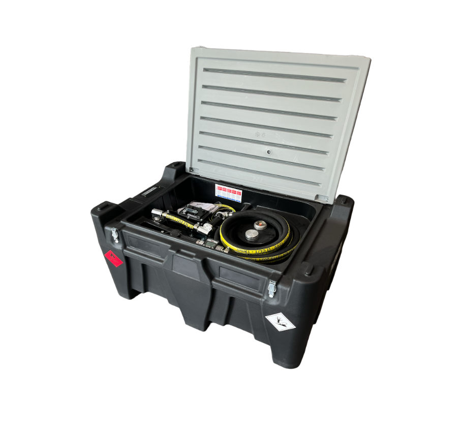Kompaktowy i lekki, wykonany z polietylenu liniowego w technologii rotomoldingu, zbiornik Carrytank na benzynę wyposażony jest w następujące elementy: wzmocnioną, zamykaną pokrywę, wlew 2″, urządzenie wentylacyjne, jednostkę do transferu paliwa, zintegrowane kieszenie na widełki (dla pełnego zbiornika), uchwyty do podnoszenia i przenoszenia (dla pustego zbiornika) oraz zintegrowane wgłębienia do zabezpieczania paska zaciskowego podczas transportu. Wszystkie elementy wykonane są z aluminium lub materiałów kompatybilnych z paliwem benzynowym.