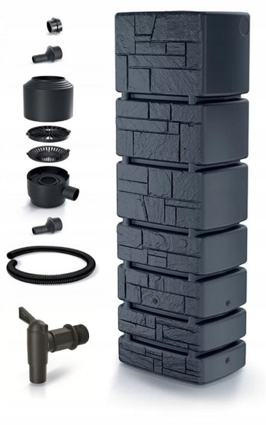 ZESTAW 2 ZBIORNIKI TOWER STONE 350L ANTRACYTOWY+ ZESTAW MONTAŻOWY DO RYNNY + ZESTAW MONTAŻOWY MIĘDZY ZBIORNIKAMI